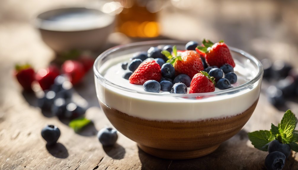 Dodatkowo, każda porcja dostarcza około 170 mg wapnia, niezbędnego dla mocnych kości i potencjalnie zmniejszającego ryzyko osteoporozy. Jeśli chcesz poprawić swoje ogólne zdrowie, codzienne spożycie jogurtu może zwiększyć wchłanianie składników odżywczych i wzmocnić Twój układ odpornościowy.
