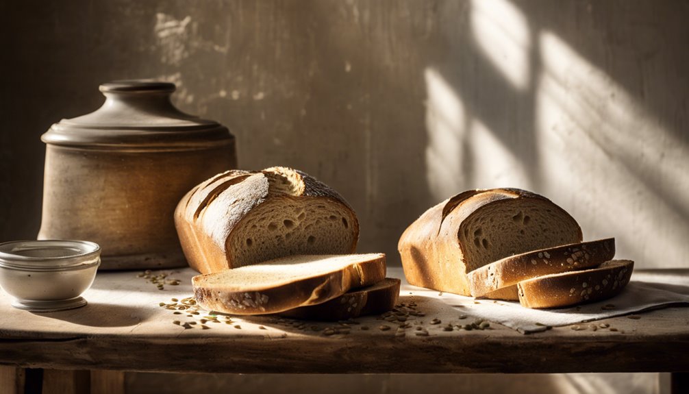 Kawałek chleba pełnoziarnistego ma około 75 do 85 kalorii, podczas gdy chleb biały ma około 70 do 80 kalorii. Ale nie chodzi tylko o kalorie; chleb pełnoziarnisty ma więcej błonnika i niezbędnych składników odżywczych. Dla zdrowszej opcji, szukaj mąki pełnoziarnistej jako pierwszego składnika i dąż do co najmniej 3 gramów błonnika na kromkę. Sprawdź również etykiety żywieniowe, aby zapewnić jakość. Pamiętaj, że kilka mądrych wyborów może poprawić Twoją dietę. Jeśli jesteś ciekawy innych czynników do rozważenia przy wyborze chleba, zostań z nami po więcej informacji.